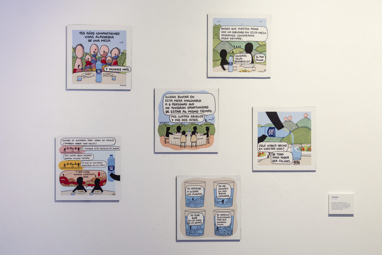 Por nuestro 150 aniversario, hemos contado con artistas como Ana Milán, Los Bravú, Ana Jarén, 72 kilos, Eating Patterns y Pepe Baena que han creado interpretaciones únicas que reflejan el concepto de reunirse y disfrutar en torno a una mesa donde Font Vella siempre ha estado presente.