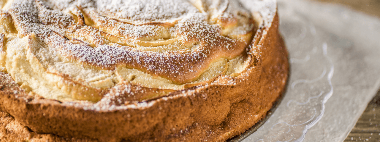6 Después, en un molde de bizcocho previamente engrasado con mantequilla, verter la mitad de la mezcla de yogur, colocar una capa de gajos de manzana, luego otra capa de masa, otra de gajos de manzana y finalmente acabar de verter el resto de la masa.