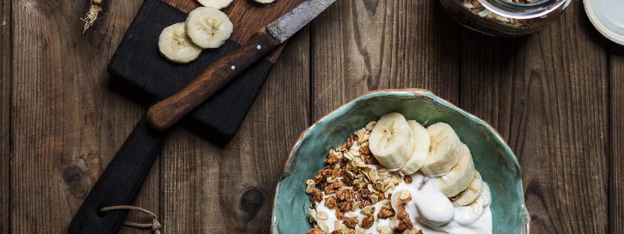 3 Ponemos Danone Proteína, sin nada de grasa ni azúcares añadidos, como base. Después, la cucharada de crema de cacahuete, toda la fruta que hemos lavado y cortado y, por último, los frutos secos y el coco deshidratado en el bol. ¡Empieza el día con buen pie y disfruta de tu desayuno!
