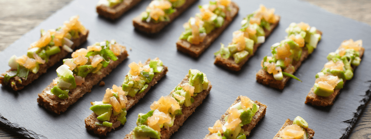Canapés de aguacate con vinagreta de yogur