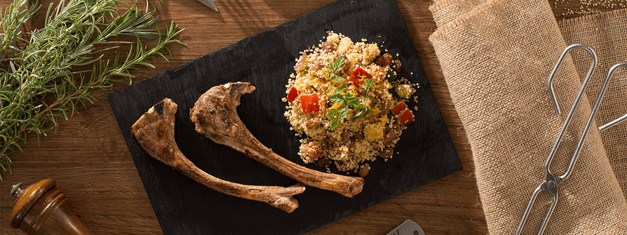 6 Servir el cuscús con verduras junto con las costillas de cordero al lado.