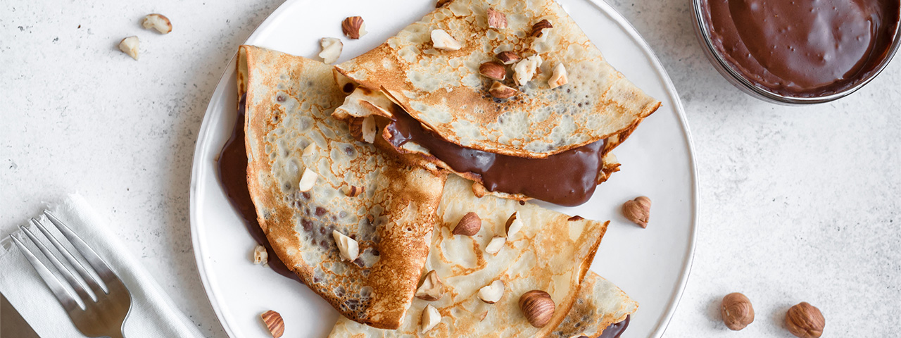 4 Cuando empiecen a formarse pequeñas burbujas de aire en la masa para crepes, darle la vuelta con cuidado. Después de dorar el otro lado, colócalo en un plato y rellénalo con Danet de Chocolate. Con la masa restante, repetir las veces que hagan falta.
