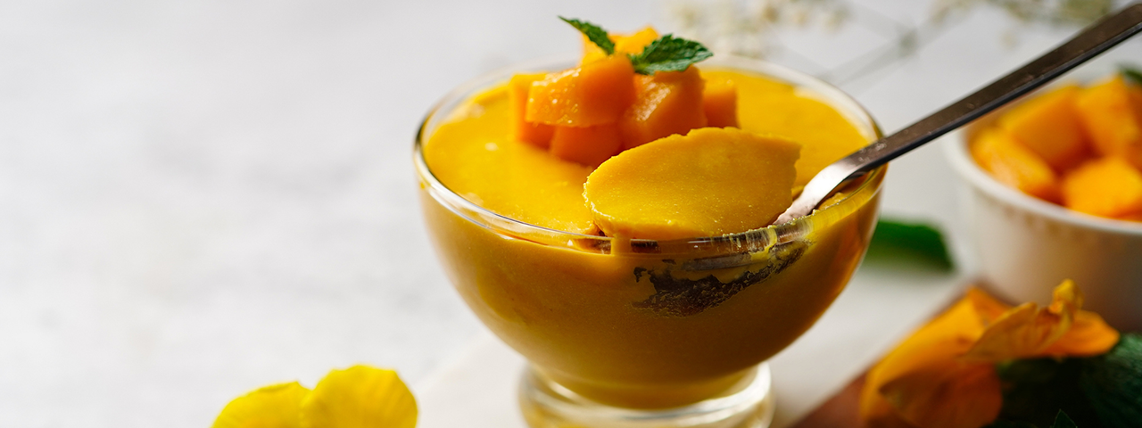 “Postre ligero, cremoso y lleno del sabor tropical del mango.”